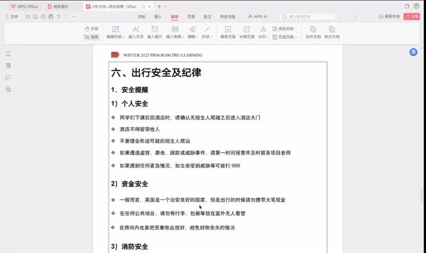 To ensure the smooth implementation of this winter camp programme, QMES held two pre-departure briefing sessions on December 18, 2024, and January 6, 2025. The training covered a wide range of topics, including preparations before departure, course planning, overseas living guidelines, safety risk prevention, disciplinary requirements, and emergency response plans. Through these sessions, students gained a clearer understanding of the upcoming overseas study trip, while their awareness of safety and sense of responsibility were further strengthened, providing a solid foundation for the successful execution of the programme.