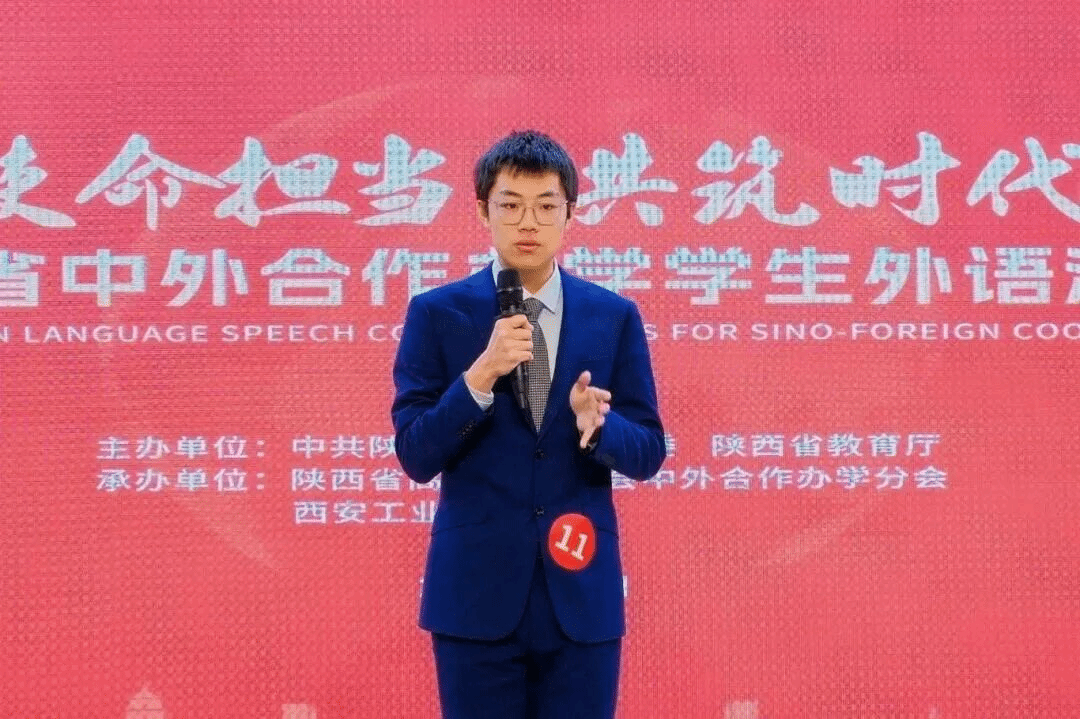 On 25 November, the final and award ceremony of the 2025 Foreign Language Speech Contest for Sino-Foreign Cooperative Education Students in Shaanxi Province was held at Xi’an Technological University (Weiyang Campus). The event was hosted by the Education Working Committee of the Shaanxi Provincial Party Committee and the Shaanxi Provincial Department of Education, and jointly organised by the Sino-Foreign Cooperative Education Branch of the Shaanxi Higher Education Association and Xi’an Technological University. The competition attracted 63 students from 23 institutions across the province to the preliminary round, with 24 contestants advancing to the final. Zhang Jizhi (Class of 2023), Zheng Yunpei and Han Xinhou (both Class of 2024) from QMES delivered outstanding performances and were all awarded first prizes. QMES was also honoured with the “Outstanding Organisation Award”.