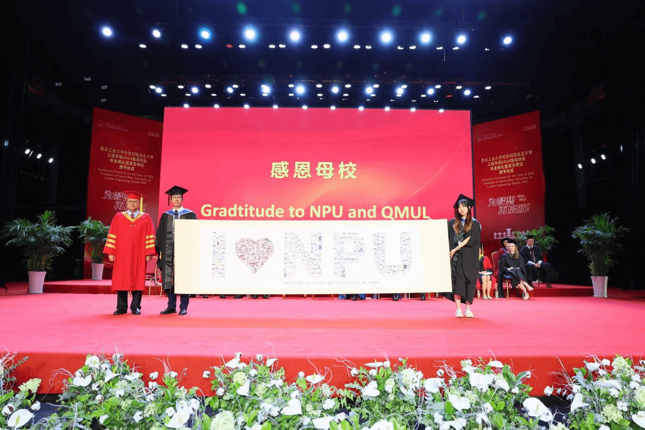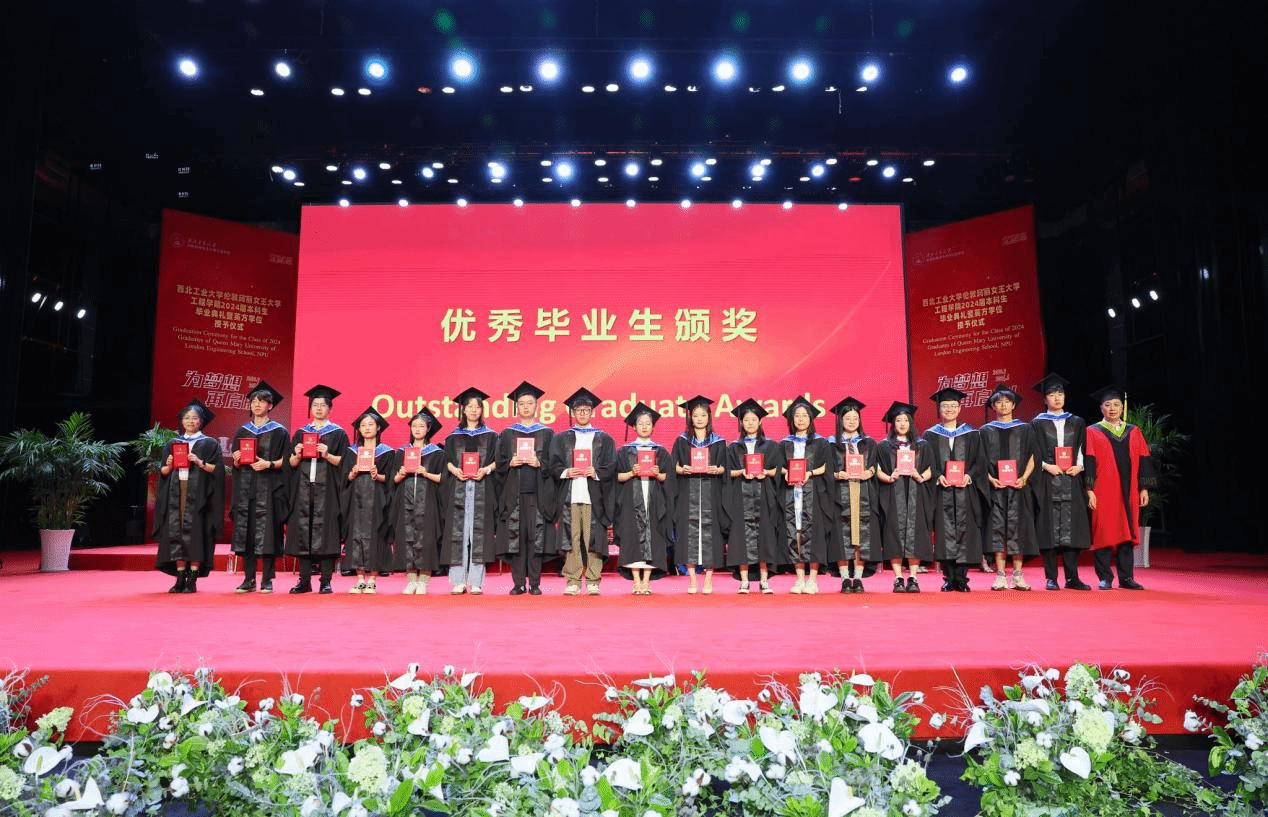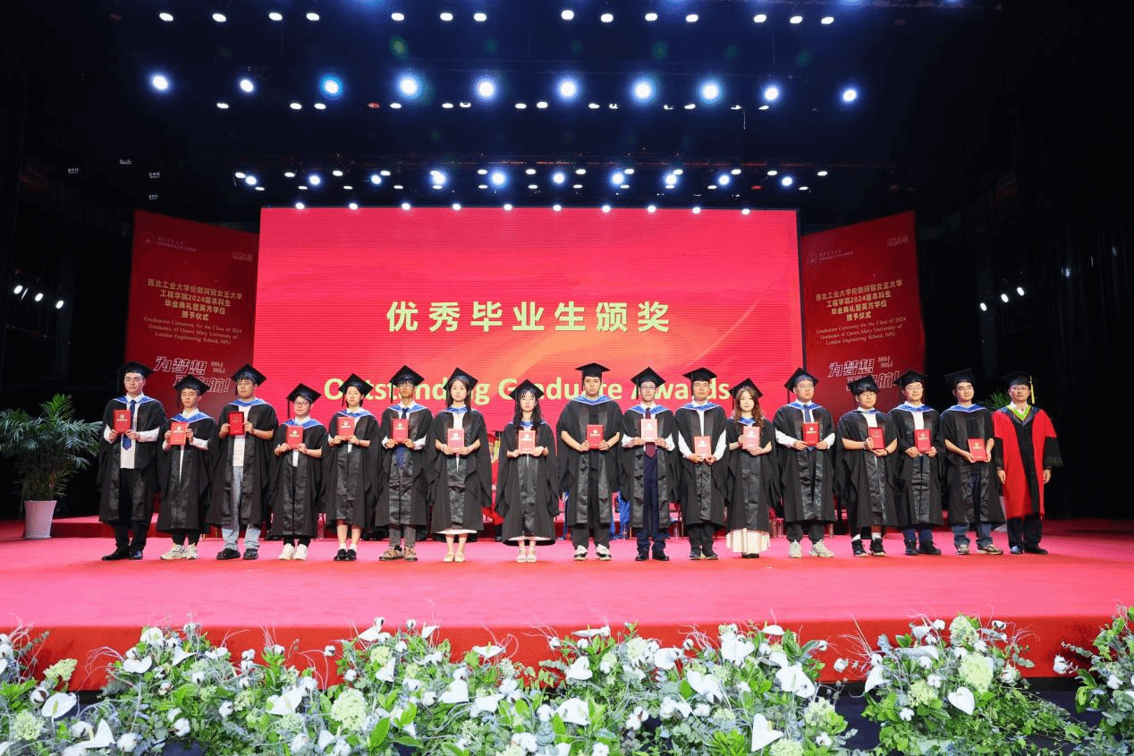 Thanks to the joint efforts of the two institutions, the Class of 2024 graduates have excelled. Wang Wen awarded the QMUL Principal’s Awards to Chen Shaoqian, Yin Yuehao, Ye Yuanming, and Jiang Zixian. Kong Jie, Director of the International Cooperation Office at NPU, presented the Best Paper Awards to Sun Yuyao and Li Fengyuan, and the Best Progress Award to Zhang Zhiwei. Additionally, Wang Haipeng, Director of the Undergraduate Academic Affairs Department, and She Leilei, Secretary of the NPU Youth League Committee, awarded the Outstanding Graduate Certificates to 33 students, including Xue Longqi, Yang Zihan, and Li Hao, congratulating them on their exceptional academic achievements.