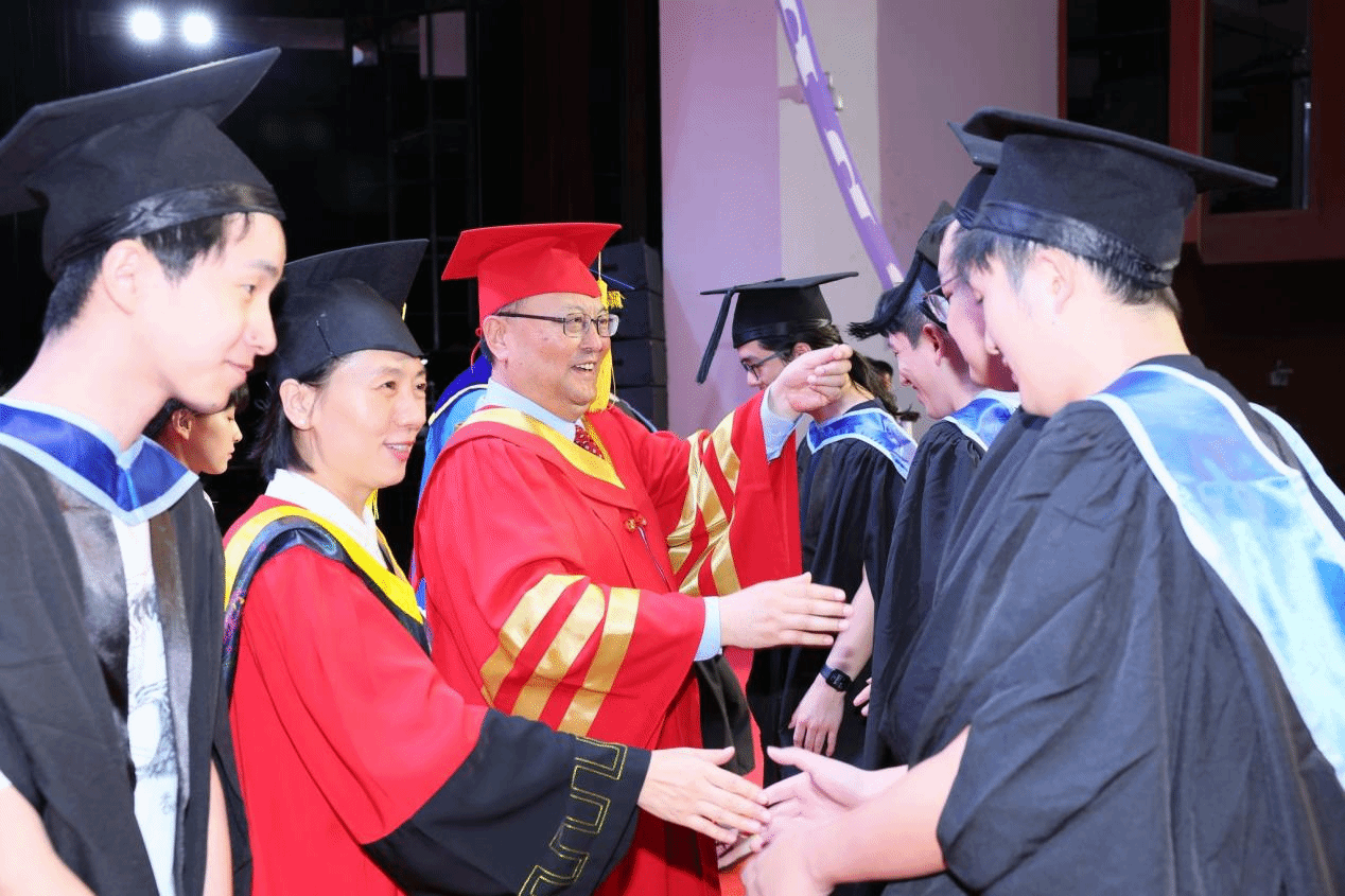 As a gesture of deep affection for their alma mater, the graduating representatives presented a carefully crafted scroll featuring photographs and an outstanding poster of the entire graduating class. Song Baowei and Colin Bailey received the gift on behalf of both institutions. Meanwhile, the graduating representatives extended their sincerest wishes to their respected teachers, with the class tutors, year coordinators, and administrative staff accepting the flowers presented by the students.
