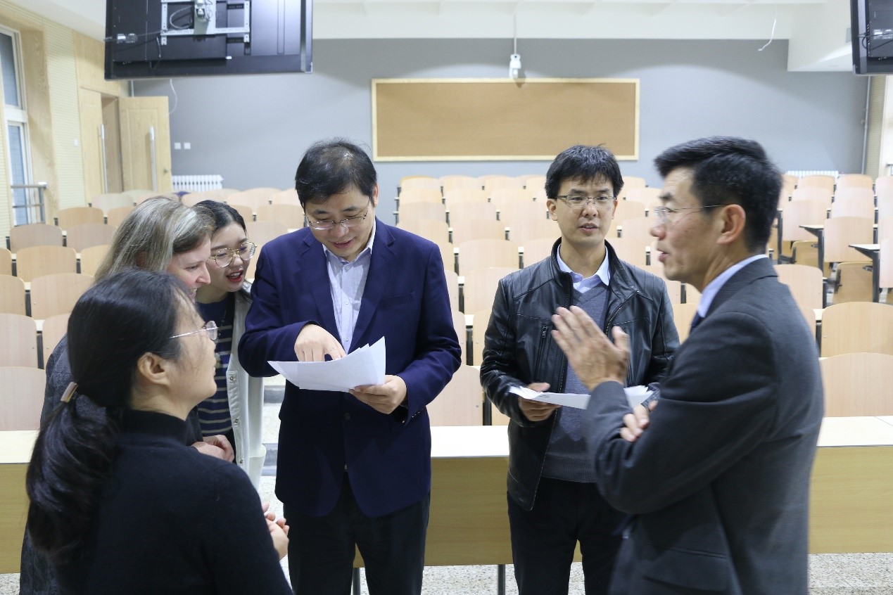 During their visit in JEI, Dean Kong Jie introduced the current operation of JEI, students’ study and life to the Prof. Wang and Ms. Anne Parry in great detail. Afterwards, the guests came to the classroom ofLinear Algebra and talked with Chinese teacher teaching in English about the content of teaching and the teaching style. Also, they asked students about feedbacks from the course.