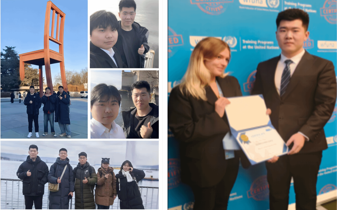 The project lasted for 10 days. Under the guidance of the organisers of the programme, students conducted research visits to various institutions, including the United Nations Headquarters, the World Health Organization (WHO), the World Trade Organization (WTO), the International Telecommunication Union (ITU), the International Red Cross and Red Crescent Museum, and the International Federation of Red Cross and Red Crescent Societies (IFRC), as well as the United Nations Water Resources Organization. Interactive training sessions were held at United Nations International Children’s Emergency Fund (UNICEF), United Nations High Commissioner for Refugees (UNHCR), and UN Trade and Development (UNCTAD). Furthermore, students participated in a Model United Nations Conference, engaging in diplomatic negotiations and interactive discussions on topics such as multilateral diplomacy principles and “Green Earth”. On January 26th, they delivered group closing speeches and presented their achievements, receiving graduation certificates from the World Federation of United Nations Association (WFUNA). During breaks in the programme, the students, under the guidance of their teachers, visited landmarks such as the Palace of Nations, broadening their international perspectives.