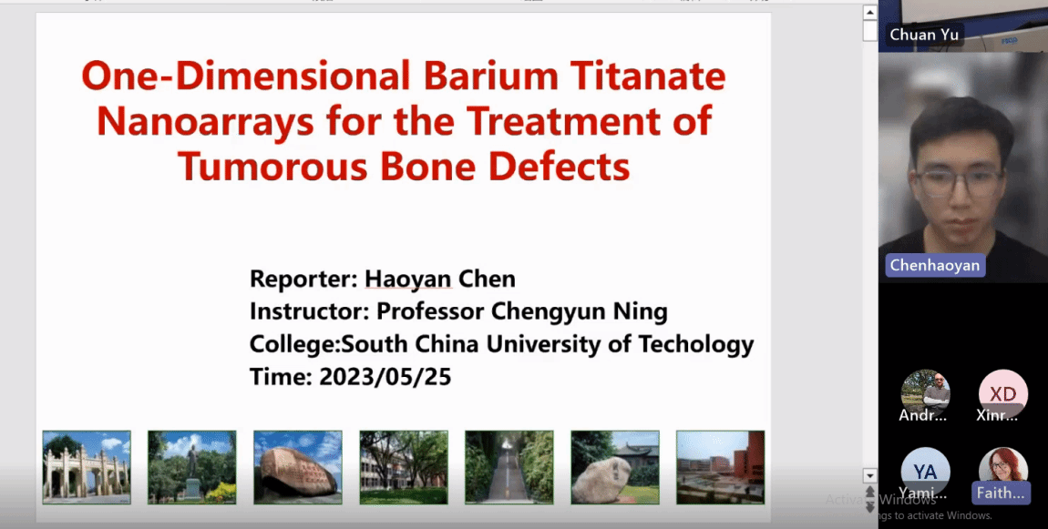 Chen Haoyan, a doctoral student from South China University of Technology, presented his research—one-dimensional barium titanate nanoarrays for the treatment of tumorous bone defects. The diversification of participants also confirms the increasing influence of the competition in academia at home and abroad.